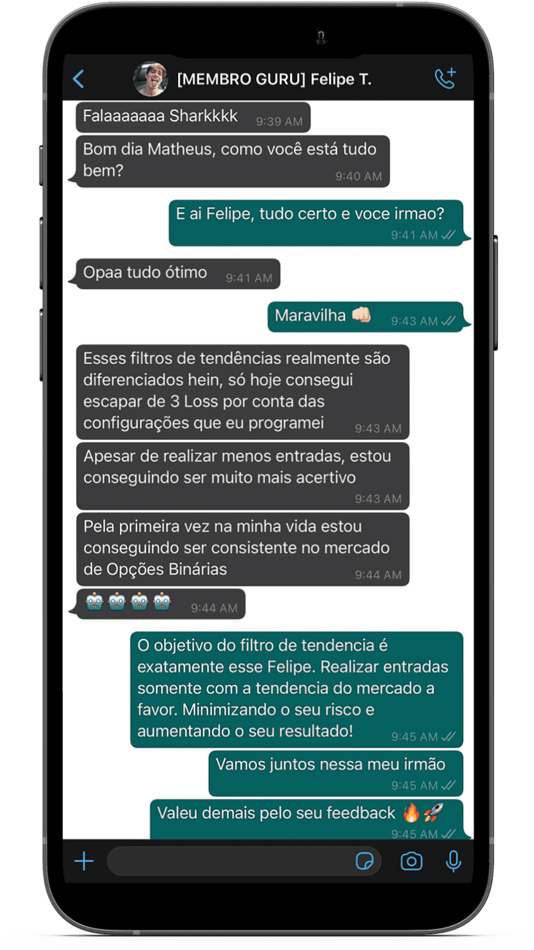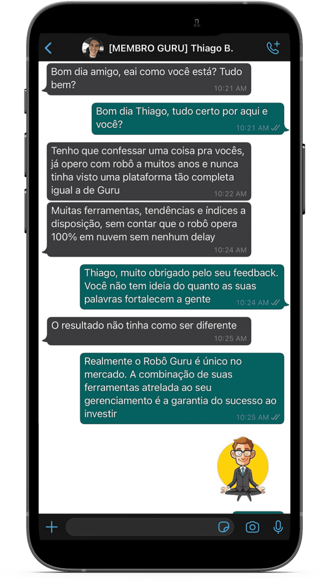 Possuímos ferramentas e indicadores configuráveis, afim de auxiliar a filtragem dos sinais e a tomada de decisão do Robô Guru. Assim minimizando o seu risco e maximizando o seus resultados.